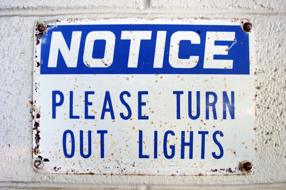 The authors found that the presence of a sign did make a difference – a small sign was six times as effective than no sign at prompting ‘lights off’ behaviour, and that large signs were almost twice as effective as small signs.